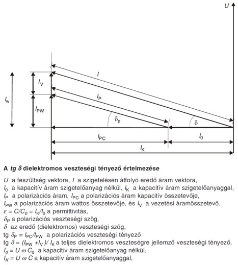 „Villamos erőtérben polarizáció kialakulásakor a szigetelőanyagban levő villamos töltéssel rendelkező részecskékre erő hat, ennek hatására ezek elmozdulnak. Ám a részecske erő irányában való elmozdításakor az erőtér erő x út nagyságú munkát végez. Ha az erőtér nem egyirányú, hanem pl. 50 Hz-es váltakozó feszültség hozza létre, azaz másodpercenként százszor megváltoztatja irányát, akkor a részecskék mozgása, tehát a munkavégzés is folyamatos. Az így végzett munka a szigetelőanyagban hővé alakul és az anyagot melegíti, ez az anyagban fellépő polarizációs veszteség. A szigetelőanyagokban a polarizáció kialakulása tehát kettős hatással jár, egyrészt megnöveli a szigetelés töltéstároló képességét, másrészt váltakozó irányú erőtérben az állandó átpolarizálódás következtében polarizációs veszteség lép föl, ez a szigetelőanyagot melegíti. A polarizációs veszteségen kívül a szigetelésben fellép a vezetési áram következtében még vezetési veszteség is. A két veszteség összege, a szigetelésben keletkező összes veszteség a dielektromos veszteség. [1]”
